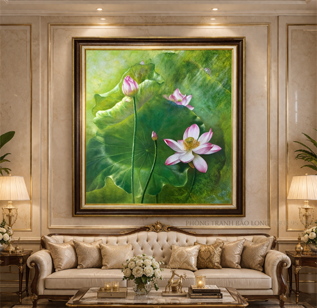 - Tranh được căng trên sườn gỗ thông cao cấp.
